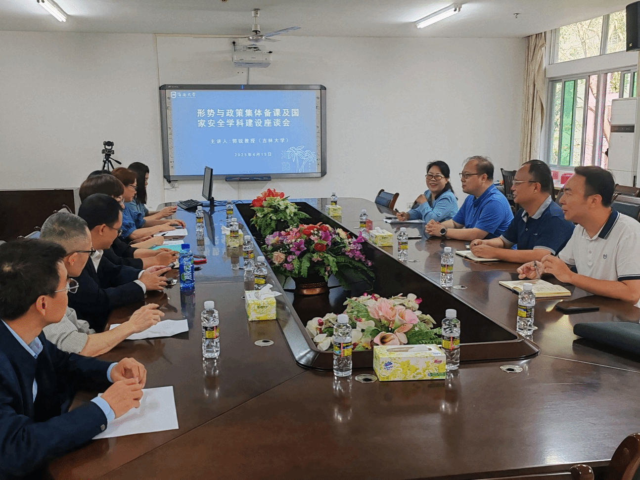 2025年4月15日上午,今年会官方网站在社科楼A311举行集体备课会。特邀吉林大学国家发展与安全研究院副院长郭锐教授围绕国家安全学科建设进行专题指导。座谈会由“形势与政策”教研室主任彭兴智副教授主持,学院副院长王善教授、政治学责任教授姜秀敏分别发表关于学科建设的讲话,“形势与政策”教研室全体成员参会。