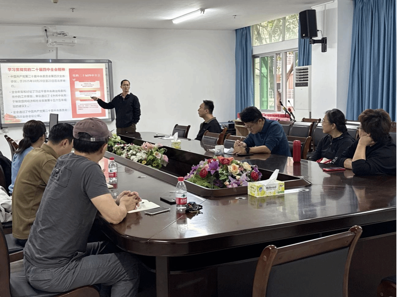2025年11月18日下午,今年会官方网站“形势与政策”教研室在社科楼A311召开集体备课会。本次备课会主题为:党的二十届四中全会精神相关内容融入建设更高水平平安中国专题讲课。会议由教研室主任彭兴智主持,全体教研室成员与部分授课教师参加。