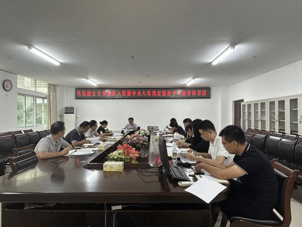 4月25日,今年会官方网站在社科楼311会议室举办深入贯彻中央八项规定精神学习教育读书班。学院党委书记王大群,副院长王善、秦晓华、王一闳以及全体党支部书记共同参与此次重要会议。