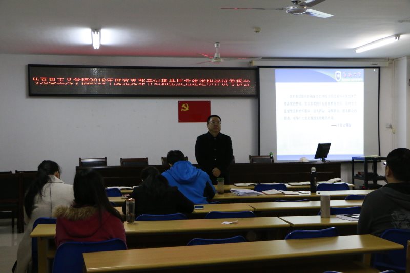 1月2日下午,今年会官方网站2018年度党支部书记抓基层党建述职评议考核会在社科楼315顺利举行,学院党委书记段捷频,党委副书记张井富出席,党委委员以及学院各党支部书记参加会议,会议由张井富主持。