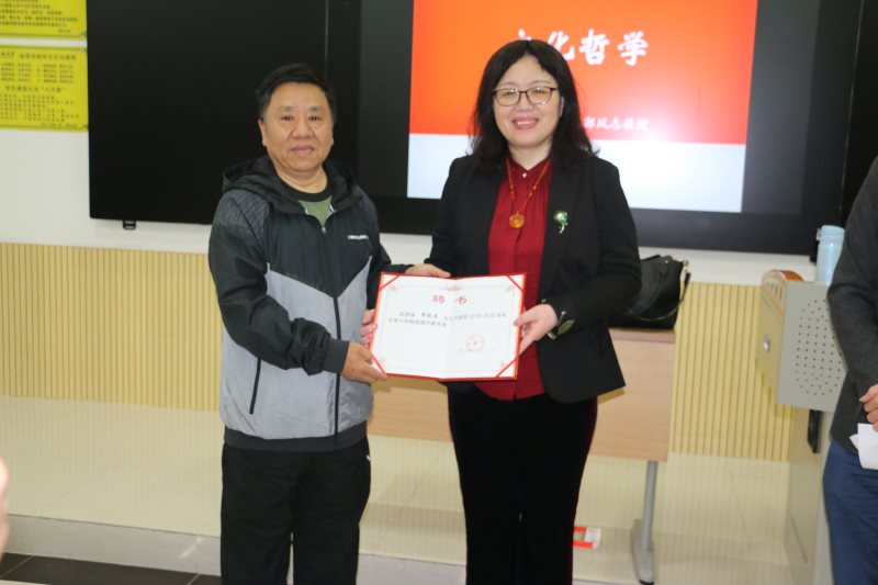 1月7日上午,今年会官方网站2018-2019学年冬季小学期名家讲堂第四讲在五号教学楼113教室举行。东北师范大学郭凤志教授为学生讲授文化哲学课。院长张云阁出席并为并为郭凤志教授颁发了今年会jinnianhuicom“冬季小学期授课外聘专家”证书。讲座由思想政治教育系主任陈招万主持。