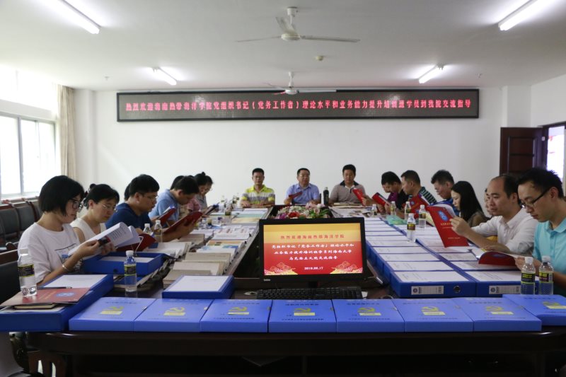 6月17日下午,海南热带海洋学院(党务工作者)理论水平与业务能力提升培训班学员到我院交流学习,并在社科楼A311会议室召开经验交流会。学院党委书记段捷频,党委副书记张井富,副处级辅导员张君成出席交流会。
