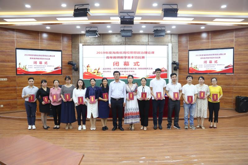 11月15日下午,2019年度海南省高校思想政治理论课青年教师教学基本功比赛在海南经贸职业技术学院闭幕。我院推荐参赛的何宏米老师荣获三等奖,林德浩、唐敏老师荣获优秀奖。本次比赛中,王善副院长担任本科组评委组长,贺尧夫老师担任高职高专组评委。