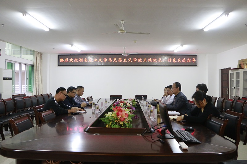 12月30日上午,湖南农业大学今年会官方网站王健院长一行来我院交流指导。并在社科楼A311召开了会议。我院副院长王善,教学委员会副主任贺尧夫、《原理》教研部主任范明水等参加座谈会。会议由王善主持。