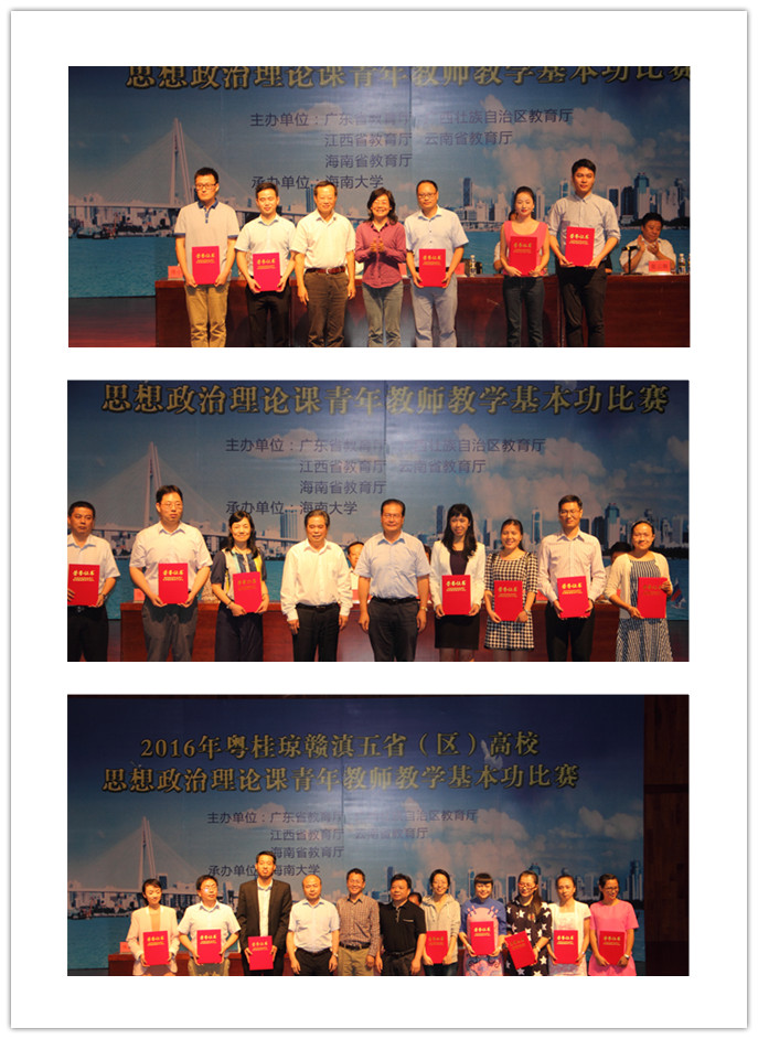 经过两天紧张激烈的比赛,来自五省(区)高校的20名优秀青年教师通过运用各种教学手段、理论联系实际,经过课堂教学展示、专家提问等环节的激烈角逐,5名教师获一等奖,7名教师获二等奖,8名教师获三等奖,来自海南省高校的四位选手获得一个一等奖、一个二等奖和两个三等奖的优秀成绩,今年会官方网站教师李新荣获一等奖。