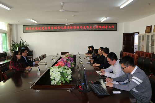 2月19日下午,校党委常务副书记廖清林到我院调研指导工作,党委办公室副主任徐凤莲陪同。学院党委书记段捷频、院长李德芳、副院长杨娜和学院全体行政人员参加调研座谈会。