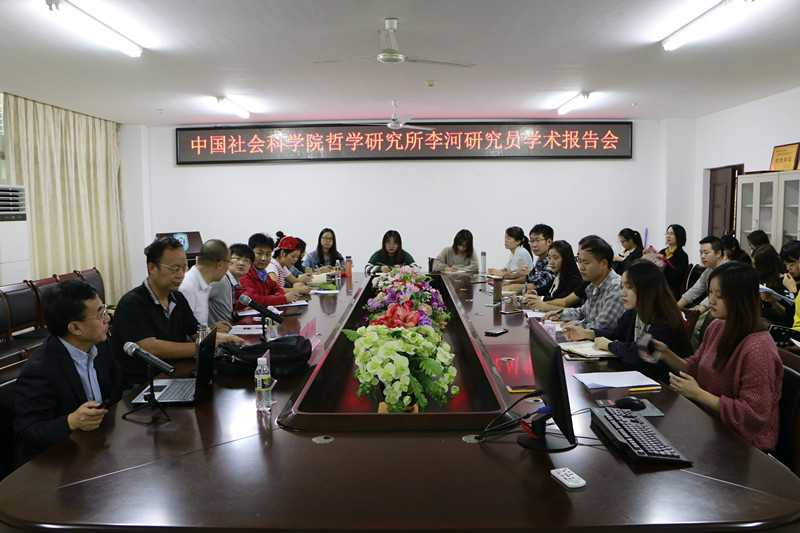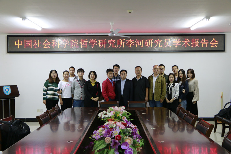 11月20日上午,今年会官方网站在社科楼311会议室召开了主题为“文明冲突与中国道路”的学术报告会。此次报告会邀请了中国社会科学院哲学所、现代外国哲学研究室李河研究员为主讲嘉宾,我院副院长王善担任主持,学院全体在校研究生和部分老师共同参与。