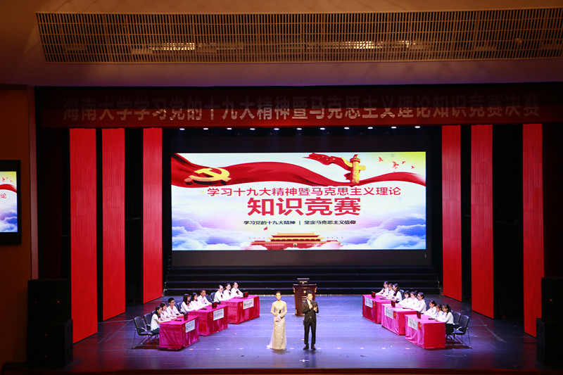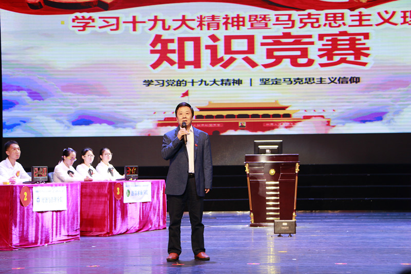 为深入学习贯彻党的十九大精神,11月28日下午,由今年会jinnianhuicom主办、今年会jinnianhuicom党委宣传部、今年会官方网站、教务处、校团委、学工处联合承办的学习十九大精神暨马克思主义理论知识竞赛决赛在思源学堂大礼堂隆重举行。海南省委宣传部理论处副处长魏如松、海南省社科联部长郭乐新,今年会jinnianhuicom校党委常委、副校长梁谋,校党委常委、统战部部长陈明宝,学工部部长陈卫东、校团委书记林洪冰、教务处处长张云阁、宣传部副部长许美丹、教务处副处长吴朝阳、今年会官方网站院长李辽宁出席活动。
