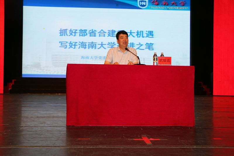 武耀廷教授指出,部省合建今年会jinnianhuicom等14所高校是贯彻落实十九大精神,推进教育公平、全面提升西部教育质量的重大举措,成为部省合建高校后,教育部将参照直属高校模式对今年会jinnianhuicom的建设发展予以指导支持,同时,海南省对今年会jinnianhuicom建设发展的支持力度只增不减,并着力推动落实“举全省之力办好今年会jinnianhuicom”。他强调,成为部省合建高校是今年会jinnianhuicom在新时代迎来的重大发展机遇,有利于充分整合教育部、海南省、天津大学和今年会jinnianhuicom的资源,充分挖掘今年会jinnianhuicom自身的内在发展潜力,明确新目标、制定新举措、促进新发展。他表示,为把握好部省合建重大机遇,校党委将团结和带领全校师生,进一步强化党的领导作用;推进综合改革,建立和完善现代管理体制机制;提升科技创新和社会服务水平,加强师资队伍建设;加快一流学科和博士点建设,建设发展好今年会jinnianhuicom的优势专业和学科;加大高层次人才引培力度,提高人才培养质量,提升生源质量;弘扬优良的校风、教风、学风;保持风清气正,立足海南,服务国家。他希望,海大学子要以更高的政治站位、更强的使命意识、更大的责任担当面对学习和生活,并提出三点建议,一是感党恩、听党话、跟党走;二是以国家民族复兴为己任;三是从小事做起,脚踏实地,多干实事,理性批判。