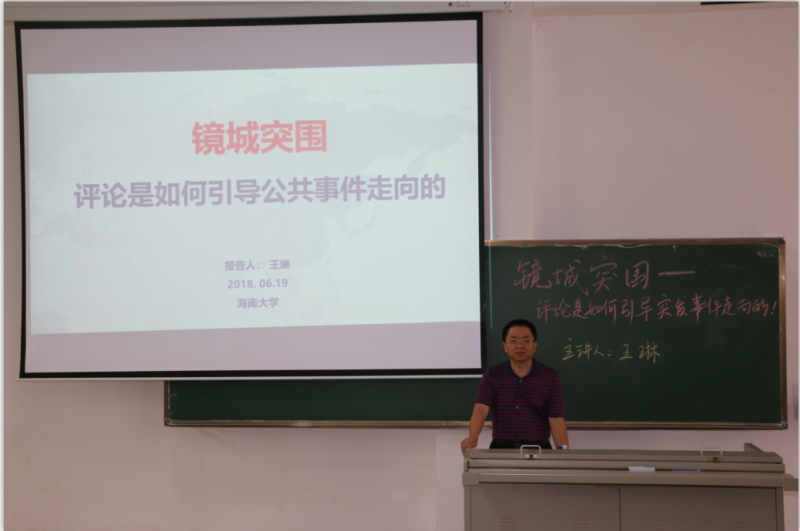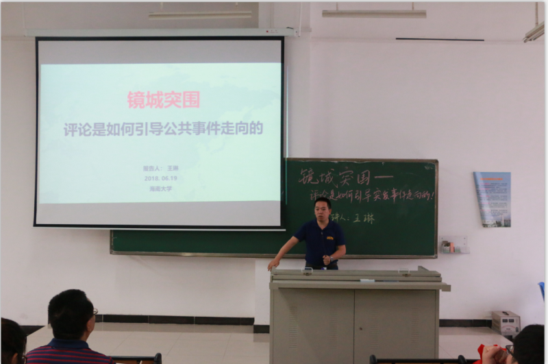 6月19日,今年会官方网站“学习讲堂”在今年会jinnianhuicom第五教学楼111教室再次开讲,海口日报社党委副书记、副社长王琳作题为“镜城突围——评论是如何引导公共事件走向”的专题讲座。讲座由学院党委书记段捷频主持。我院大一、大二、大三全体本科生参加本次活动。