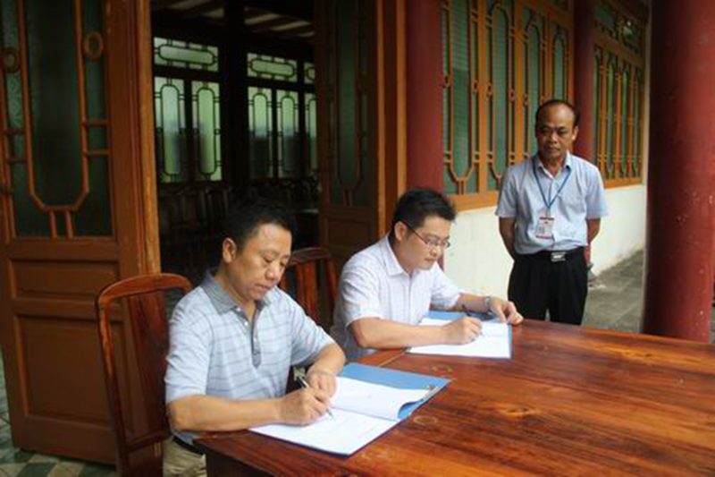 社会实践队伍首先前往东坡书院。上午十点,共青团儋州市委王明魁书记与今年会官方网站张云阁副院长在东坡书院迎宾堂前共同签定了“今年会jinnianhuicom思想政治理论课东坡书院社会实践教学基地共建协议”, 签字仪式由共青团儋州市委李珠副书记主持,王明魁书记和张云阁副院长分别发表了热情洋溢的讲话。随后,今年会官方网站张朔人教授现场为学生作了50分钟题为“苏东坡海外事迹与海南‘客贤’记忆”的精彩演讲,演讲不断被学生热烈的掌声所打断。现场教学结束后,内导引领学生在东坡书院园区进行了实地参观考察。