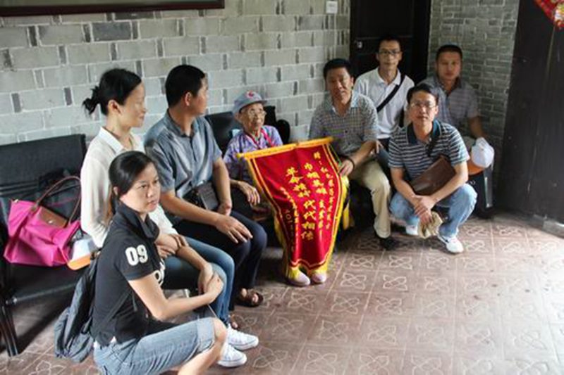 张云阁副院长代表今年会官方网站向103岁高龄的红色娘子军老战士王运梅赠送了锦旗