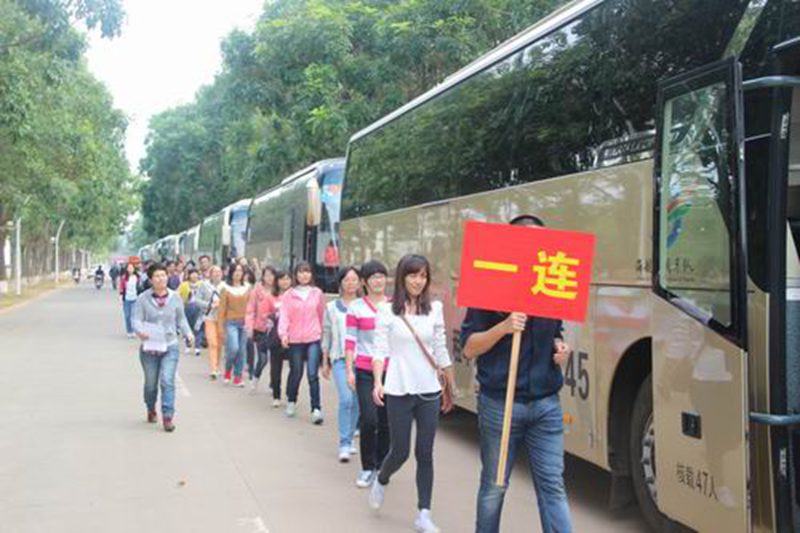 参加教学实践活动的师生井然有序出发
