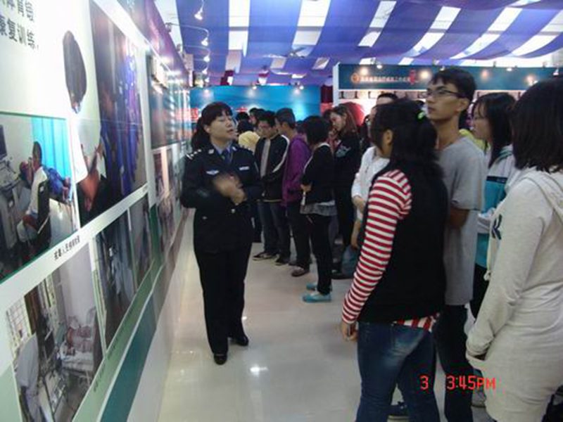 揭牌仪式后,在戒毒所干警的引领下,全体师生先后参观了戒毒成果展、戒毒人员劳动产品展、脱敏工作室,戒毒人员生活区、学习区,聆听了戒毒人员的“现身说法”,观看了戒毒人员的太极拳表演。下午五点半,社会实践活动圆满结束。