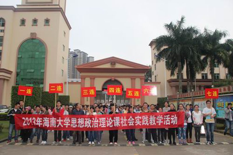 社会实践教学活动是我校构建的以“课堂实践教学”为主、“校园实践教学”、“网络实践教学”和“社会实践教学”为辅的“一主三辅”式思想政治理论课实践教学活动的一种形式。目前,我校已经建立了母瑞山革命根据地烈士陵园、琼海市博鳌镇朝烈村、儋州市东坡书院、海南省第一强制隔离戒毒所等四大类8个社会实践教学基地,为我校思想政治理论课实践教学活动的有序开展提供了稳定的基地保证。