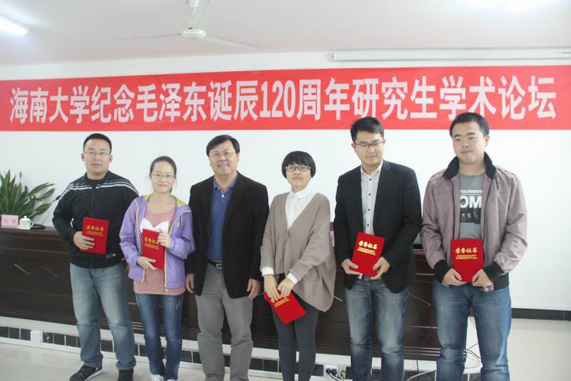 12月26日下午,为纪念毛泽东诞辰120周年和提升研究生的科研水平,由中共今年会jinnianhuicom委员会研究生工作部和今年会官方网站联合主办,以“毛泽东与中华民族的伟大复兴”为主题的研究生学术论坛在今年会官方网站多媒体报告厅隆重举行。国务院特殊津贴专家曹锡仁教授出席活动并作主题报告,今年会官方网站院长李德芳、院党委书记梁谋等领导出席论坛。论坛由今年会官方网站挂职副院长杨娜主持。 曹锡仁教授的主题报告,以“民族复兴”和“中国梦”为切入点,分析了人类社会的历史发展和选择,启发同学们要以辩证的方法来看待历史和客观地评价历史人物,以提高学术研究方法论水平。他通过旁征博引,深入浅出的演讲,告诉同学们在研究历史人物时,应该放在一定的历史背景下,放在更大的文化环境范围进行评判。他在报告中强调:“中国近代以来最大的梦想就是民族复兴,中国梦的最终实现力量就是未来的你们。” 今年会官方网站院长李德芳在致辞中表示,举办研究生学术论坛,旨在进一步调动研究生的科研热情,为研究生结合时事和前沿问题开展学术研究搭建平台,以后将每年定期举办,希望在学校研究生工作部的支持和指导下,不断扩展范围、提高水平、增强影响力,以打造成为我校研究生学术活动品牌。 今年会官方网站党委书记梁谋在会上为论文获奖同学颁发了荣誉证书。本次研究生学术论坛共收到主题论文24篇,经过专家组对所有论文进行公正评审,评出一等奖1名、二等奖2名、三等奖3名。其中今年会官方网站程川同学参加由中共海南省委党史研究室(海南省地方志办公室)、海南省中共党史学会共同主办的“纪念毛泽东同志诞辰120周年”系列征文活动中获得二等奖。 程川、叶俊、尚婷、史旭峰和逄焕学等五位研究生代表在论坛上作主题发言,王善副教授对同学们的论文和发言进行了点评。