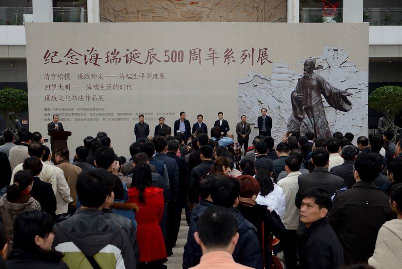 1月15日下午,纪念海瑞诞辰500周年系列展览在海南省博物馆正式开展。系列展览从1月16日起面向公众开放,展览时间持续到春节后。海南省委常委、宣传部部长许俊出席开展仪式并参观了纪念海瑞诞辰500周年系列展览。我院院长李德芳和部分教师作为协办单位代表参加活动。 经海南省委同意,省纪委、省委宣传部联合举办的纪念海瑞诞辰500周年系列展览,是以“传承海瑞精神,弘扬廉政文化”为主题的系列活动之一。我院作为协办单位,为活动的顺利开展做了相关筹备工作,学院教师张朔人博士是此次系列展览的总撰稿人。 此次系列展共包括三个部分。其中,《清官楷模 廉政师表———海瑞生平事迹展》通过文物、图片、多媒体技术,多角度展示了海瑞刚正不阿、清正廉洁、耿介忠义的一生。为了使展品更加完善和丰富,主办单位从2013年12月开始,费时一个多月,先后前往广东、浙江、江苏和北京等地,大规模搜集有关海瑞的史料。展览结束后,所有展品将移到海瑞故居。为了方便无法到现场参观的网友了解海瑞的生平事迹,展览还即时开通了网上展厅;现场观众也可以刷二维码登录访问。 此同时,省博物馆与首都博物馆联合承办的《回望大明———海瑞生活的时代》,展览文物104件(套),勾勒明代中晚期社会生活画面,并将海瑞元素置身其中,构建起彼此之间的内在联系。 《廉政文化书法作品展》则收录了我省书法界作品76幅,反映我省广大干部群众学习清官楷模、建设廉政文化的积极精神风貌。