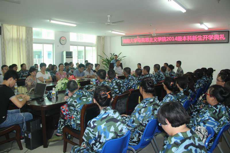 9月15日上午,我院在学院会议室隆重举行了2014级本科生开学典礼。院党委书记段捷频、副院长张云阁、杨娜,学院综合办、学工办、教研办和思想政治教育系负责人、新生班主任、教师代表、老生代表出席,2014级全体思想政治教育专业新生参加典礼。典礼由副院长杨娜主持。 段捷频书记在典礼上致辞。他首先祝贺全体新生考入今年会官方网站,并代表学院热烈欢迎来自五湖四海的同学们成为今年会官方网站大家庭的新成员。他向同学们介绍了学院的发展历程、机构设置、师资队伍、教学与人才培养、学科建设的基本情况,重点介绍了我院自成立以来在人文社会科学领域取得的重要成就和推行本科生学业导师制等重要教学改革举措,强调了学院对以学生为本教育教学理念和对学生工作的重视。 他对全体2014级本科生提出了四点要求和希望:一是要坚定信念、志存高远,身为思想政治教育专业的学生,必须牢记共产主义远大理想,努力学习马列主义,在专业学习中践行人生理想;二是要勤奋学好、专业过硬,要践行“立德、博学、求是、创新”的院训,勤奋好学,专业过硬, 多读书、勤思考,注重锻炼和提升自身的综合素质,在大学期间为今后的人生发展打下坚实的基础;三是要健全人格、培养情操,以积极的态度去追寻和实现自己的梦想;四是要注意安全,珍爱生命要注意自身安全,加强自我保护意识,平安和谐地度过校园时光。最后,他与同学们分享了北宋理学家的“横渠四句”一——为天地立心,为生民立命,为往圣继绝学,为万世开太平。要求同学们要时刻牢记大学生的使命和责任。 张云阁副院长在典礼上讲话。他强调同学们要增强专业荣誉感和自豪感,牢固树立学校荣誉感和学院荣誉感。他要求同学们在学习生活中重视培养创新意识,努力强化专业素养,并就如何充实大学四年的学习生活提出了具体的看法和建议。 教师代表李辽宁、老生代表郭灏以及新生代表宋佳分别在典礼上作了发言。