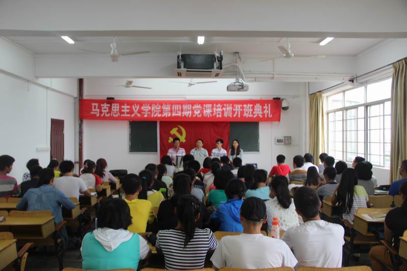 2014年11月11日下午,我院第四期党课培训班在今年会jinnianhuicom城西校区教学楼8B01室开班。正在城西校区开展党的群众路线之“三个一”活动的校党委书记刘康德莅临开班仪式现场和同学亲切交谈并作重要讲话。院党委书记段捷频出席,60多名入党积极分子参加开班仪式。开班仪式由张君成老师主持。