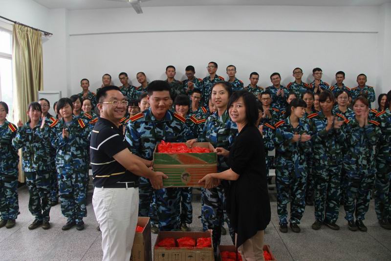 随后,段书记代表学院向教官和全体军训新生赠送了饮料。