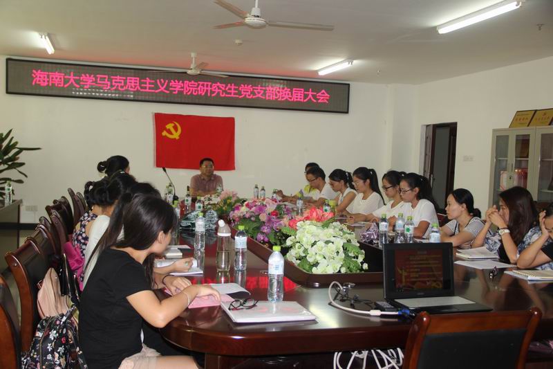 9月24日下午,我院在学院会议室隆重举行研究生党支部支委换届大会。院党委书记段捷频,研究生党支部指导老师张君成出席,研究生党支部全体党员和部分入党积极分子参加大会。大会由党支部书记王鹏主持。 段捷频书记在讲话中对上一届支委的工作给予充分肯定。他说,在2014-2015学年,研究生党支部在上一届支委的带领下,在思想建设、组织建设、作风建设和制度建设等方面积极开展工作,成效明显,在学院的研究生思想政治教育工作中发挥了重要作用。他希望,新一届支委和全体党员要发扬优良传统,进一步推进研究生党支部的各项建设工作,并提出了五点希望和要求:一是进一步加强理论学习,提高自身政治素养,树立三个自信,认真践行“三严三实”;二是进一步加强道德修养,严守政治纪律,严于律己,心存敬畏,手握戒尺;三是积极发扬党的优良传统作风,不断创新发展,积极发挥党组织的战斗堡垒作用;四是勇于担当,发挥党员先锋模范作用,在打好自身专业理论基础的同时,要密切结合学院学术情况,积极参加学术活动和开展基层党组织活动,践行党的宗旨,为社会、学校、学院的发展做出自身应有的贡献;五是要在海口市的“双创”活动发挥积极作用。 支部大会在党支部书记王鹏作上一年度的党支部工作总结报告后,张君成老师充分肯定了上一届支委的工作,并对支委换届的相关筹备工作进行了说明。大会通过民主选举程序,产生了新一届支部委员:樊红潮任党支部书记,石明星任党支部副书记,当选的其他三名支委是:郝平平、吴艳倩和宋海婷。