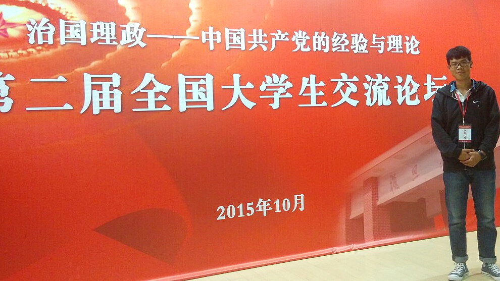 10月17日至18日,“治国理政—中国共产党的经验与理论”第二届全国大学生交流论坛在上海复旦大学举行。教育部社科中心副主任赵军,上海市教卫党委副书记、市教委副主任高德毅,复旦大学党委副书记刘承功等出席论坛开幕式。我院2014级倪圣茗同学论文入选并应邀参加论坛,与来自清华大学、复旦大学、南京大学、东北师范大学等其他高校的百余名同学一同参会研讨,并在分论坛做了发言。 在分论坛中,倪圣茗同学就其论文《中国共产党权力监督的历史演进路径》做简要阐述,该论文由陈招万老师指导,将由复旦大学统一结集出版。