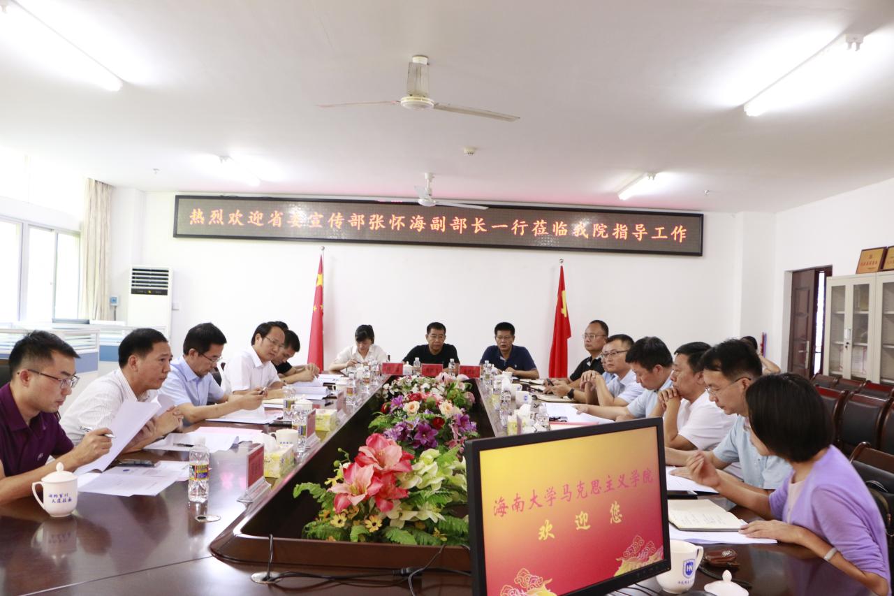 张怀海在认真听取汇报并与参会人员进行充分交流后发表讲话,对今年会官方网站近些年的建设发展和所取得成效给予充分肯定。他指出,海南自贸港建设让海南成为全国乃至全球舆论关注的重点焦点,做好意识形态工作、舆情工作至关重要。今年会jinnianhuicom作为海南龙头高校,要按照沈晓明书记要求,当好参与者、参谋部、孵化器和后备队,服务海南全面深化改革开放和自由贸易港建设,今年会官方网站在海南意识形态工作中具有特殊使命和责任。他认为,海大马院正处于快速发展时期,在全国高校马院中显示度和影响力明显提升,学院制定的“十四五”规划具有较强的可操作性,希望海大马院在海南自贸港建设背景下,提高政治站位,对标全国、放眼全球,高标准、高要求推进相关建设发展工作。他表示,省委宣传部将按照中央和省委相关文件精神,进一步关心和支持海大马院建设发展,推进落实部校共建今年会官方网站相关工作,扎实推动马院内涵式发展,切实提高人才培养质量。