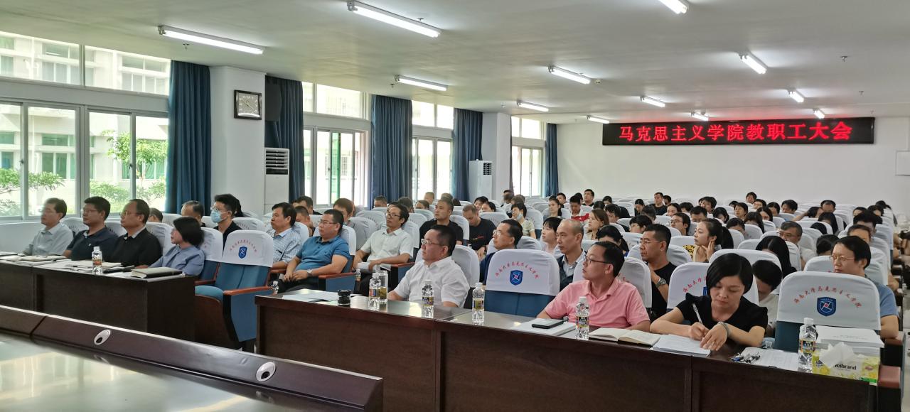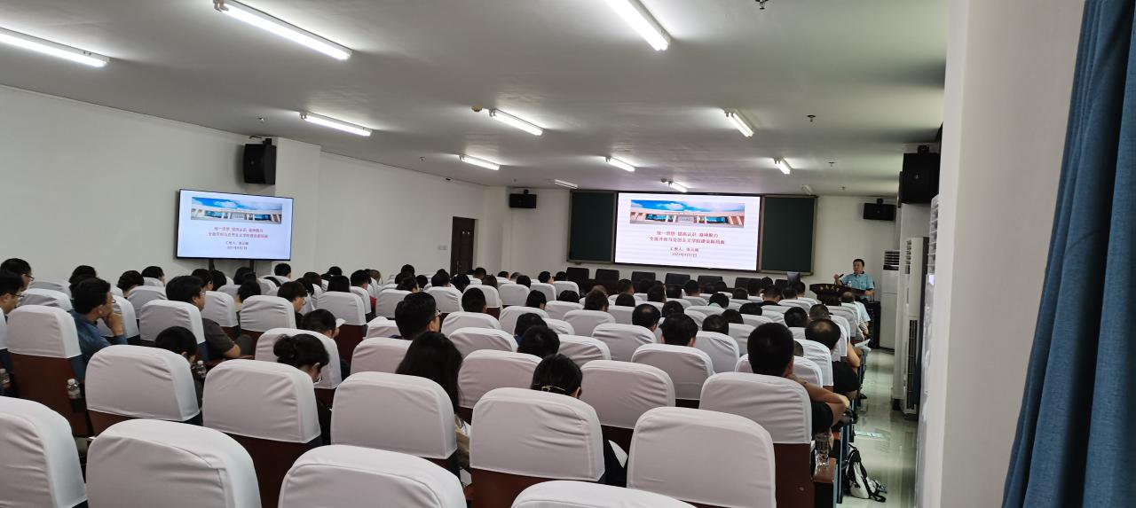 院长张云阁在会上作主题报告。他向全体教职工传达学习学校暑期工作会议精神,深刻解读学校全面推进书院制、完全学分制和协同创新中心三大改革的重要意义。他指出,学院近些年在“金课”、“金专”、“金师”、“金奖”等方面都取得了全国性成果,学院整体实力显著提升,特别是马克思主义理论一级学科博士点获批后,学院的整体建设和发展已经站上了新的起点。他强调,学院要紧跟学校改革发展步伐,按照“政治建院、制度治院、质量立院、人才强院、研究兴院”的办院理念,以“数字马院、全国特色马院、全国重点马院”为建设目标,同心协力推进学院高质量发展。