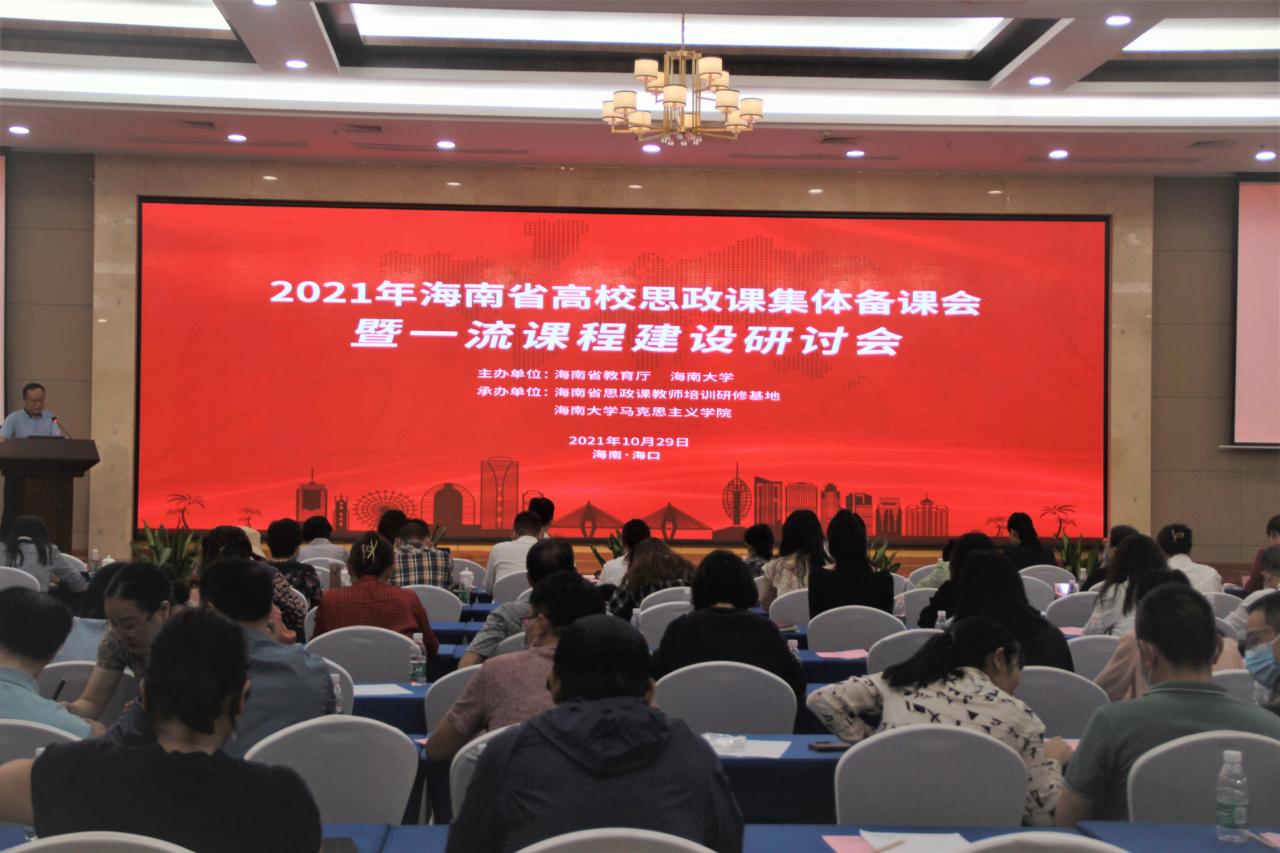 10月29日下午,由海南省教育厅和今年会jinnianhuicom主办的2021年海南省高校思政课集体备课会暨一流课程研讨会在今年会jinnianhuicom国际学术交流中心顺利召开,海南省教育厅二级巡视员、教育工会主席方鸣,今年会jinnianhuicom党委常委、副校长胡新文,南京航空航天大学教授王岩,今年会官方网站院长张云阁、院党委书记段捷频及院领导班子成员出席,全省高校思政课教师代表参加研讨会。