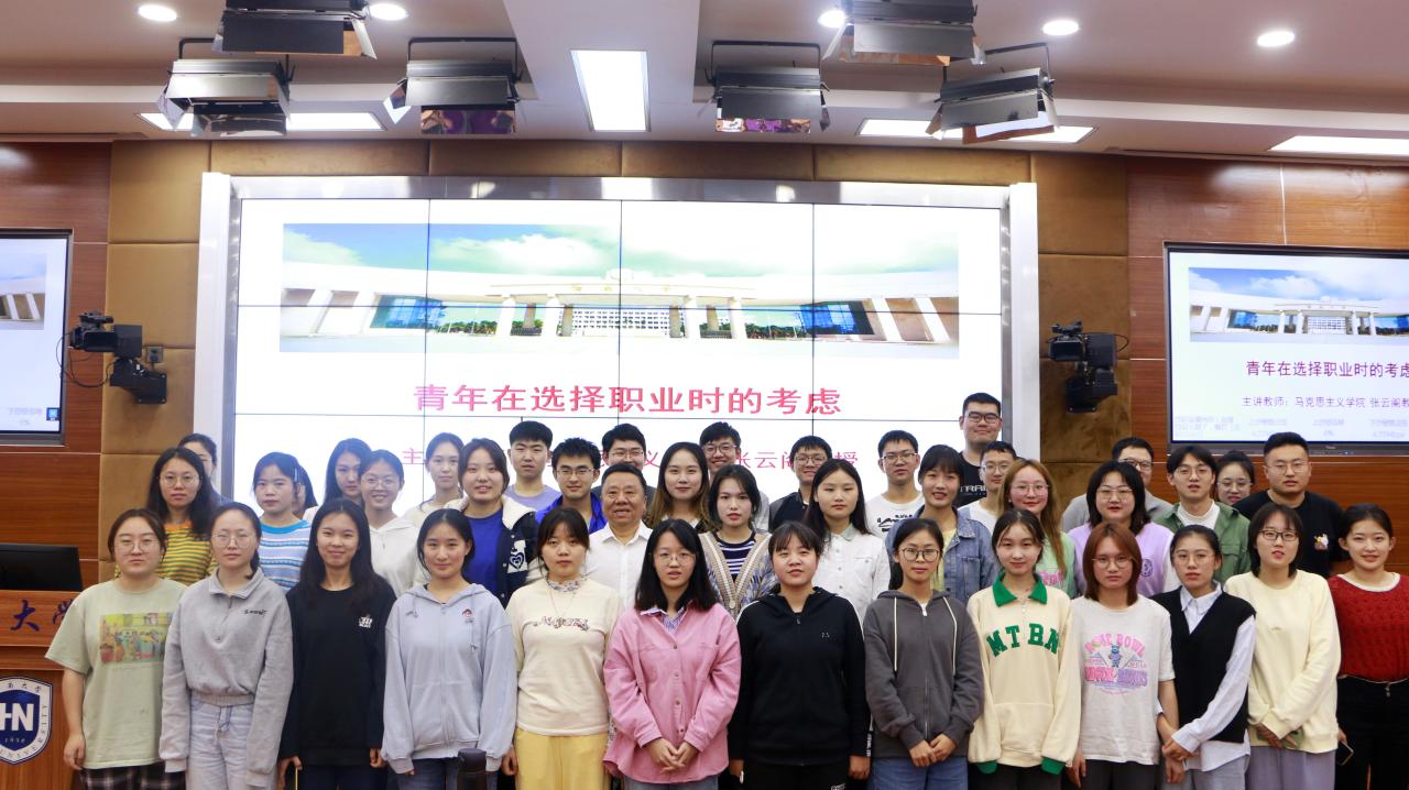 本次见面课的主题是《青年在选择职业时的考虑》。主讲教师今年会官方网站院长、全国教书育人楷模、国家教学名师张云阁教授,以“理想和职业”为关键词,用生动、幽默的语言,援引马克思著作中的精彩部分,引导同学们思考“人为什么要有理想”、“理想与职业的关系”以及“青年马克思职业选择给我们的启示”问题。整堂课张老师以青年马克思选择职业时的考虑所具有的时代意义为主线,鼓励大家结合以人类幸福和自身的完美为职业选择的指针,选择最能为人类而工作的职业,心系国家,做一名坚定的马克思主义者。