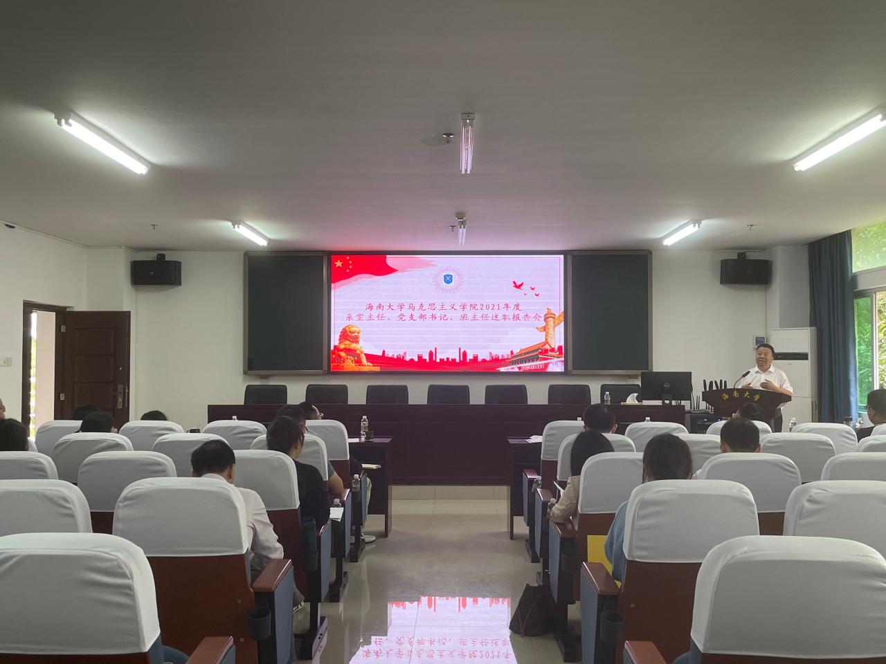 3月6日上午,今年会官方网站在社科楼A309举行2021年度系室主任、党支部书记、班主任述职汇报会。院长张云阁、院党委书记段捷频、副院长杨娜、王善、吴朝阳、秦晓华,院党委委员、副处级辅导员张君成,全体系室主任、党支部书记、班主任参加会议。