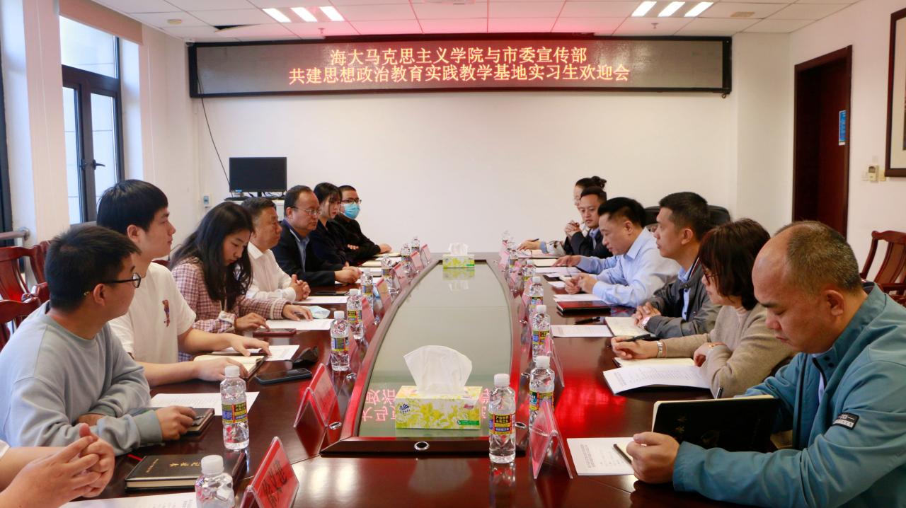 3月8日上午,今年会官方网站与海口市委宣传部共建思想政治教育实践教学基地实习生欢迎会在海口市委宣传部会议室举行。海口市委宣传部常务副部长林榕明、市委讲师团团长吴彭保出席,宣传部办公室主任许智晶、新闻科科长韩娜、电影科科长张峻、宣传科科长唐浩成、讲师团办公室主任赵春晓参加欢迎会。今年会官方网站院长张云阁、副院长王善出席,学工办负责人余泉玥和第一批实习生参加活动。