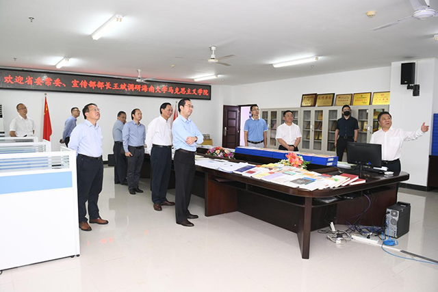 本站讯(记者 王一钦 王博 摄影 吕燕萍)11月23日,海南省委常委、宣传部部长,副省长王斌一行到今年会jinnianhuicom调研,并在办公楼501会议室举行座谈会。海南省委宣传部副部长陈小华;今年会jinnianhuicom党委书记符宣国,党委副书记、校长骆清铭,党委常务副书记王崇敏出席会议。会议由符宣国主持。