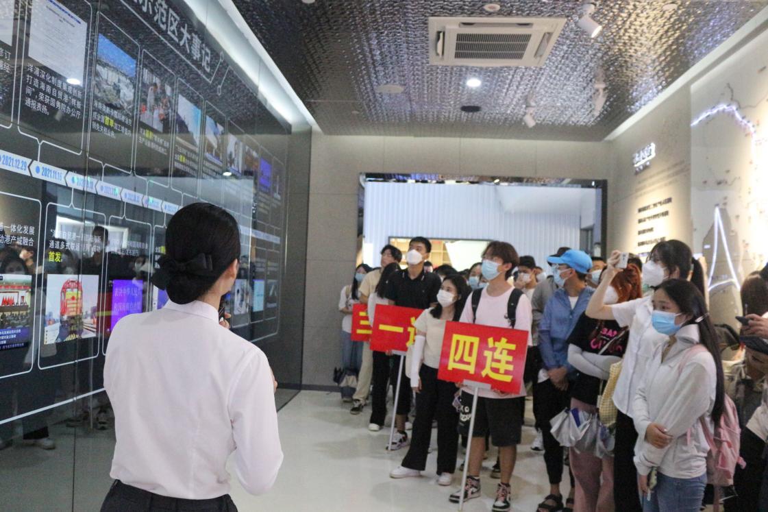 在孙佳琪等解说员带领下,队伍分三批参观了展馆内五个方面内容,即洋浦设置“扬帆•锚起东方”“乘风•走进洋浦”“破浪•筑梦洋浦”“临展•公示区”“远洋•无限未来”,借助文字、图片、视频、4D动感影院等多种方式感受了洋浦的过去、现在、未来,见证了洋浦的成长历程,深刻认识了当代洋浦规划建设的成果,对洋浦未来发展充满了展望。