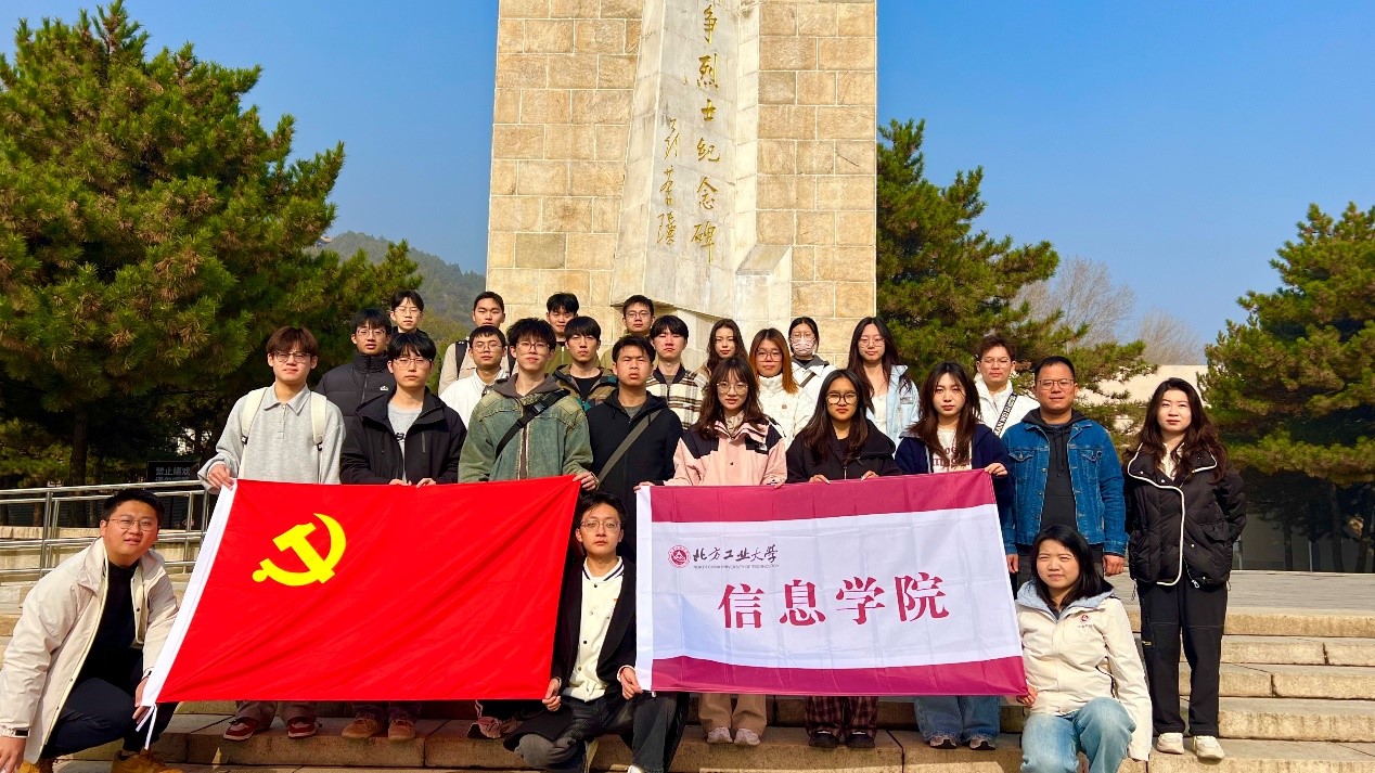 最后,同学们围绕平北抗日战争烈士纪念碑行走一圈进行默哀,气氛变得格外庄严和肃穆。同学们眼神凝视着碑身,每一个人都在心中默默祈祷,悼念那些为国捐躯的英烈。每走一步,大家的内心仿佛都在与过去的历史进行对话,感受着那些曾经的血与火,感怀着今天的和平与安宁来之不易。电信本科学生第一党支部赵柏翔表示,一定会铭记历史,从党的光辉历史中汲取精神力量,继承弘扬伟大建党精神,强化历史担当,不忘初心,牢记使命,将红色平北精神转化为动力,始终心怀理想,勇做立志报国的担当者;始终力学笃行,敢做深耕专业的开拓者;始终敢为争先,争做学校样板建设的奋进者。他将以更加饱满的热情和更加昂扬的斗志,投身到学习和生活中去,在强国建设、民族复兴的伟业中贡献工大力量!