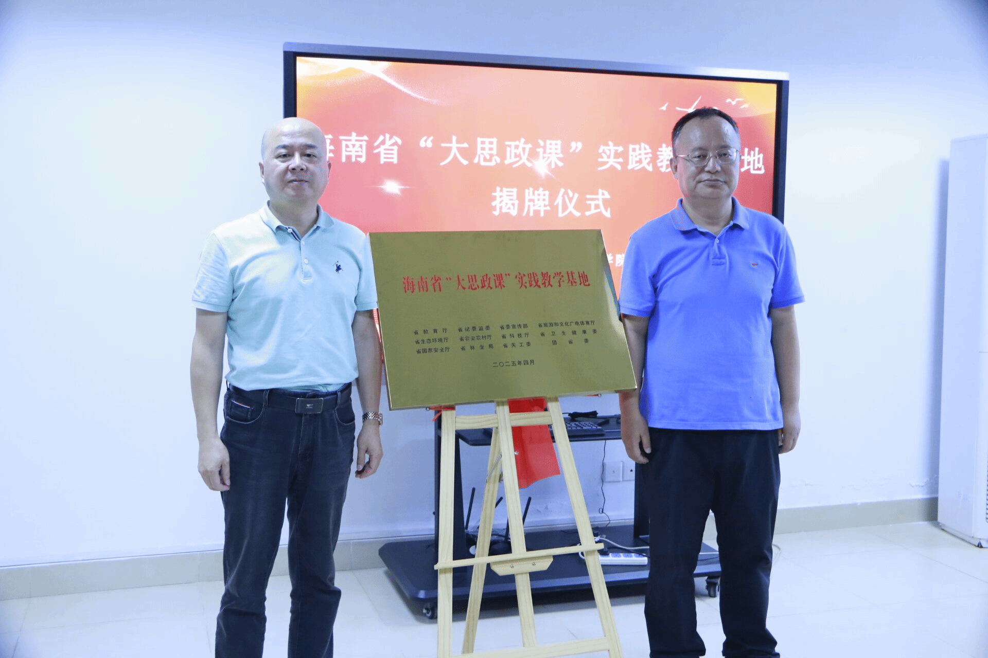 2025年4月18日下午,在今年会jinnianhuicom校史馆举行海南省高校“大思政课”实践基地结对共建、协同育人签约仪式,今年会jinnianhuicom校史馆馆长邱华祥、今年会官方网站副院长王善,海南省大中小学思政课一体化建设(今年会jinnianhuicom)联盟及基地相关负责人和工作人员参与此次揭牌仪式,海南省大中小学思政课一体化建设(今年会jinnianhuicom)负责人贺尧夫主持活动仪式。